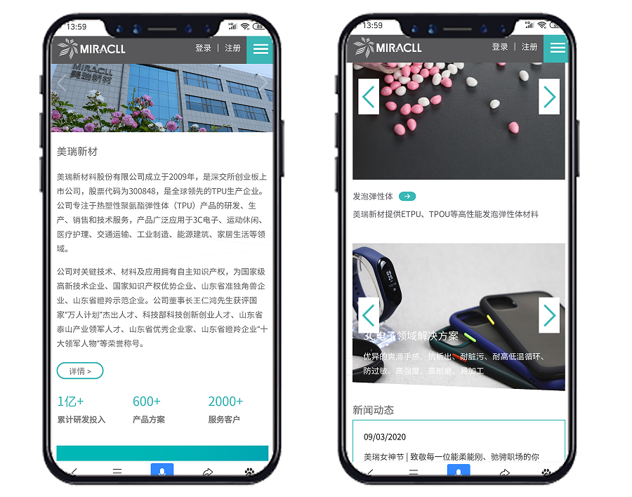 此次美瑞新材料官网正式上线,将为美瑞新材料提供全新的视觉形象展示,同时也是米兰网站_米兰网页版(China)官方网站在山东省区又一新项目交付完成。此前米兰网站_米兰网页版(China)官方网站已服务与东阿阿胶、张裕集团、潍柴动力、歌尔股份、鲁能集团、玲珑轮胎、鲁清化工等山东多家知名企业。米兰网站_米兰网页版(China)官方网站通过每次项目合作,也在不断升级服务体系及技术水平,希望以更高的专业水平及技术经验,更好地服务于全国各地的客户。