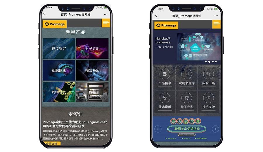 同时,为满足更多用户的需求,网站采用响应式网页设计,Promega微官网可自动适应PC端、智能型手机、平板等不同分辨率的浏览,满足用户即使脱离微信端的情况下,也能给用户提供最佳浏览体验。