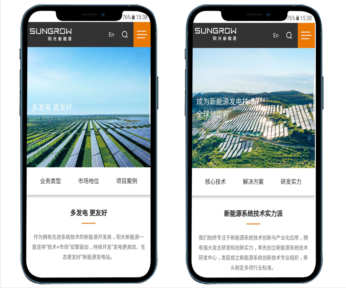 另外,米兰网站_米兰网页版(China)官方网站根据阳光新能源的业务需求,对栏目进行了精心设置,以“核心业务、技术创新、可持续发展、服务支持”为重点栏目,多形式呈现、多终端适配,符合访问者的阅读浏览习惯,更利于获取企业信息。